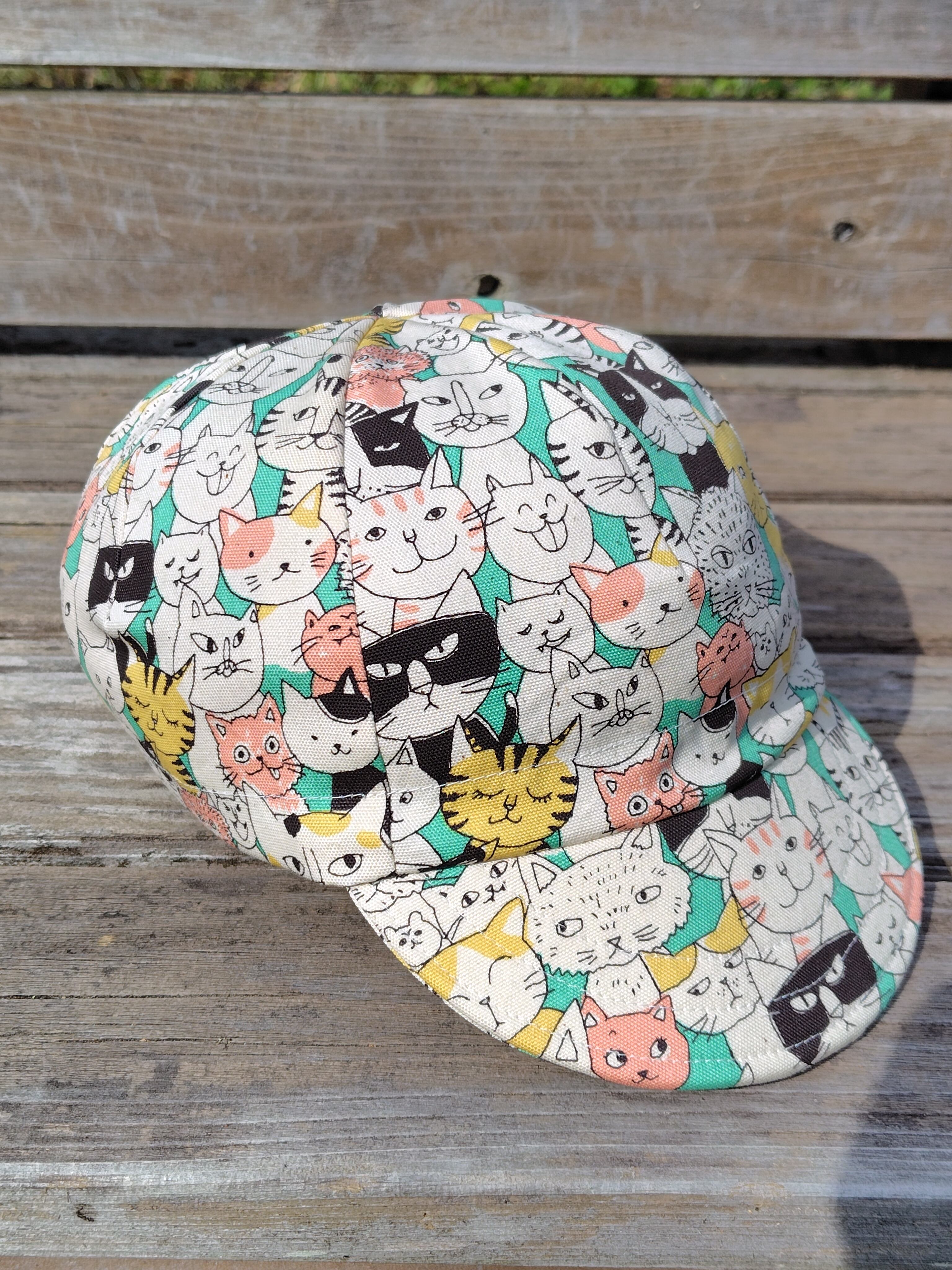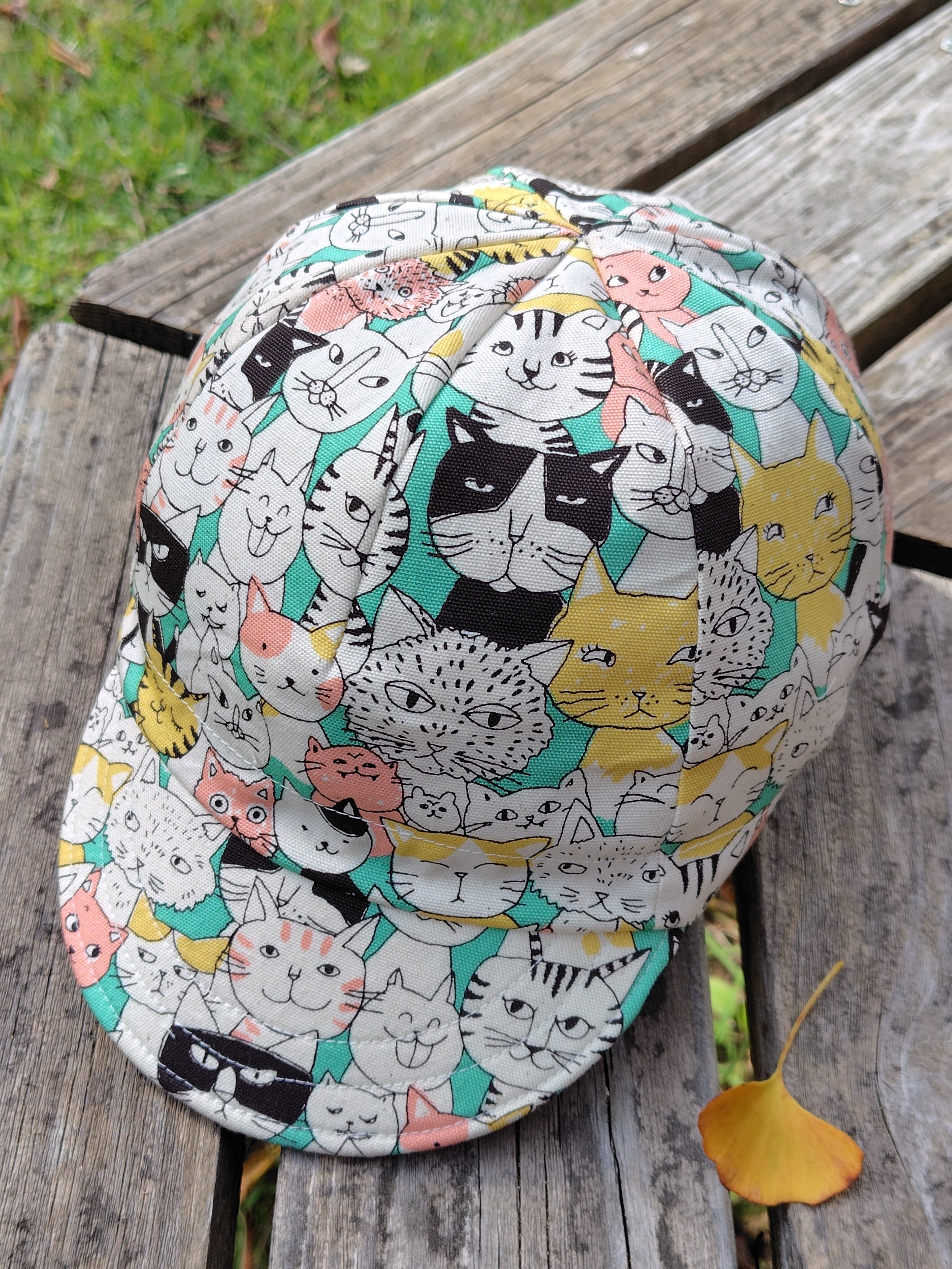 コミカルな猫の顔が可愛らしいサイクルキャップです。